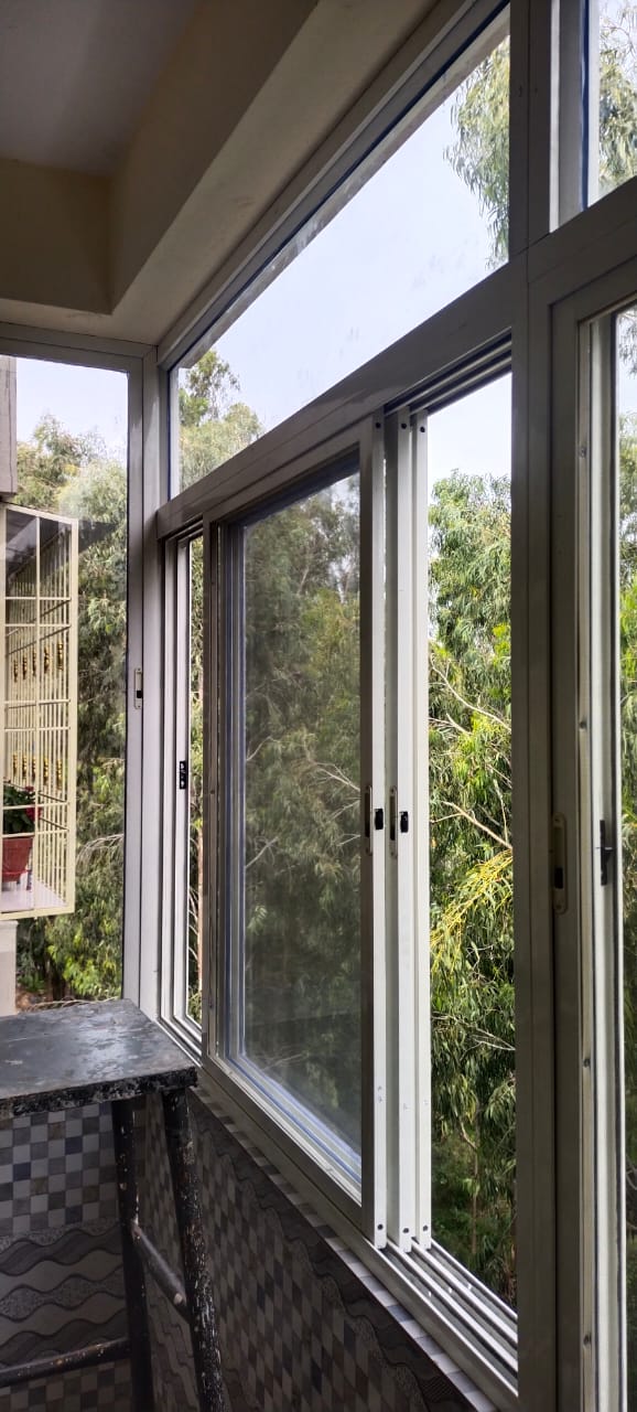 Two or Three track windows with Saint-Gobain glass Panels with premium quality roller wheels and rubber beading for an Air-tight seal.